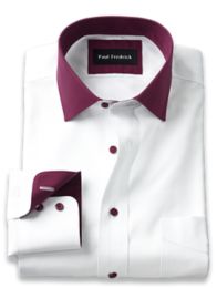Non-Iron Cotton Solid Dress Shirt with Contrast Trim. At Paul Fredrick every mens dress shirt is exclusively tailored of 100 cotton fabric. Paul Fredrick started in 1986 and is based in Pennsylvania.